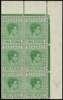 1951-3 2d green corner block of six with R3/6 RP short ‘T’ (often referred to as in a ‘retouched’ state), large part o.g. SG 152c var