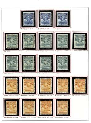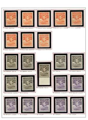 1933-52 mint collection (166) on leaves. 1933 set with the 2/6d and 10/- unmounted, commems etc with the Wedding unmounted, but principally a study of shades of the KG VI definitives with a minimum of seven of each, three each of the top values unmounted so likely yielding three unmounted sets; also unmounted 1d with 'tower' flaw, and a Specimen set, fine appearance but with traces of gum only. Dues include SG D1a. SG £1900+
