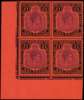 1951-2 £1 perf 13 corner block of four, HPFs including #49a cut scroll and 38. O.g., lightly hinged on the selvedge only. SG 121d, £220
