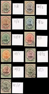 Bushire 1915 issue mint and used selection with settings and positions identified, SG 1/12