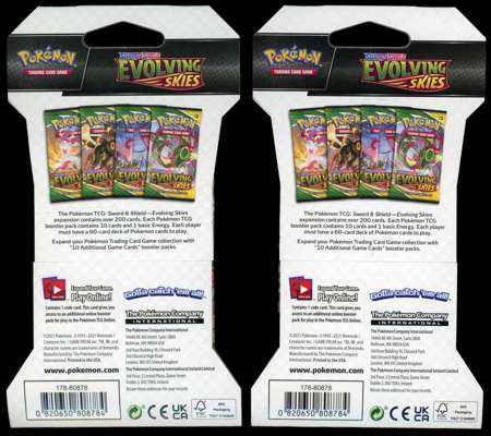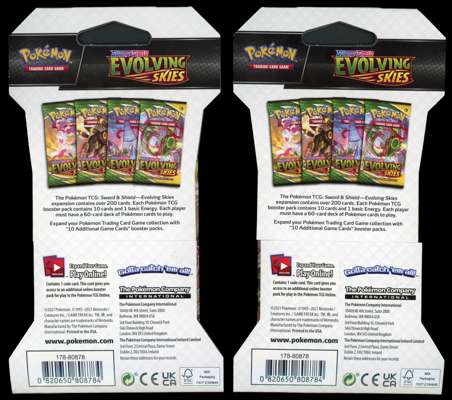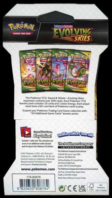 This lot features five factory sealed Evolving Skies Booster packs, these individually come in the cardboard packaging and were purchased at pop-up Pokémon centers throughout the last 16 months.