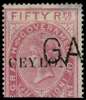 1880 overprint on India 50r rose-carmine, top half cancelled 'GA(LLE)'. One short perf at top, otherwise fine, a rare stamp;
