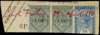 1880 1r pair with 1881 50ct on piece with full manuscript cancellation 'Pearl Fishery 19th April 1881', in the familiar red ink and hand of the Pearl Fishery cancellation while at Silavaturai. Very attractive. SG T4