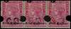 1894 5r on 25r carmine surcharge Type T120 horizontal strip of three lower halves with COLOMBO cancel, and sharing four punched holes. Some creasing, but a very rare multiple. SG T148