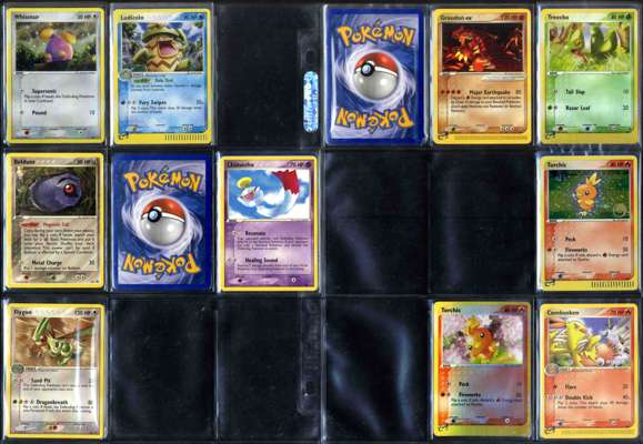 Groudon 003, Treecko 003, Torchic 006, Torchic 008, Combusken 009, Mudkip 010, Pikachu 012, Meowth 013, Whismur 019, Ludicolo 020, Beldum 022, Chimecho 024, Flygon 025, Celebi 029, Moltres ex 031, Articuno ex 032, Zapdos ex 033, Rayquaza 039