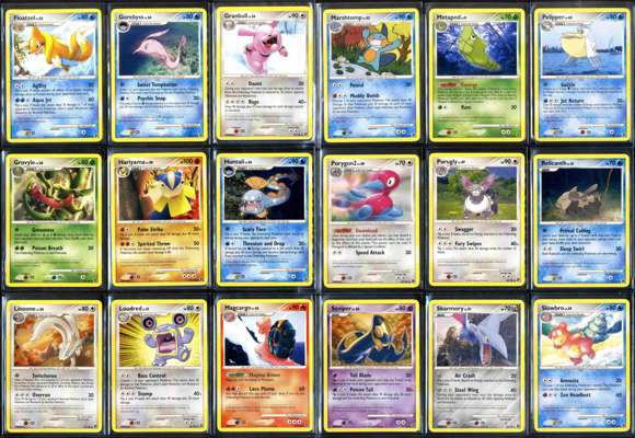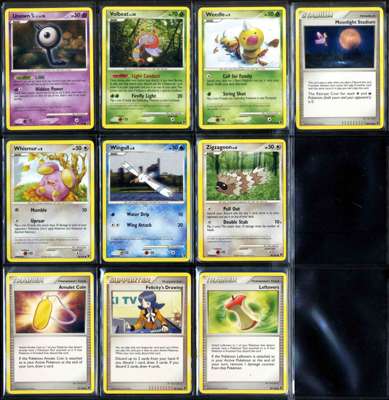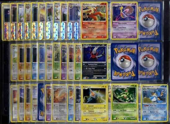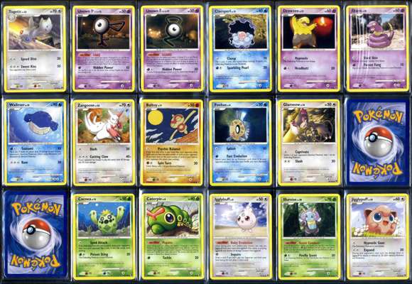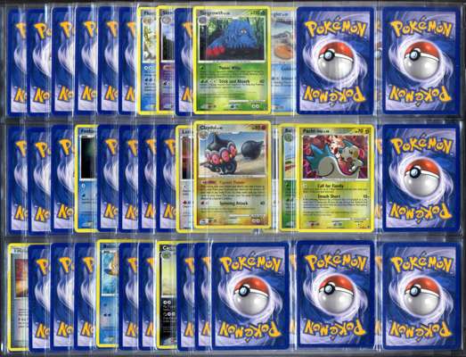 A partially complete Diamond & Pearl Great Encounters expansion, with 107 cards total, includes a selection of Reverse Holo cards. All cards are in near mint condition.