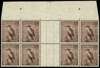 1942 6d red-brown interpanneau block of eight showing large part of Plate -6- at top, large part o.g., folded up the gutter otherwise fine. Rare. SG 190, ASC 203zb, $6500