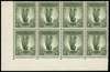 1956 1/- grey-green, no watermark. Lower left corner block of eight with R9/3 ULP ‘Green Mist’ retouch large part o.g., very lightly hinged. SG 230da, £4500