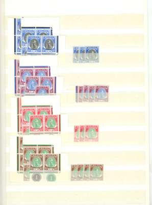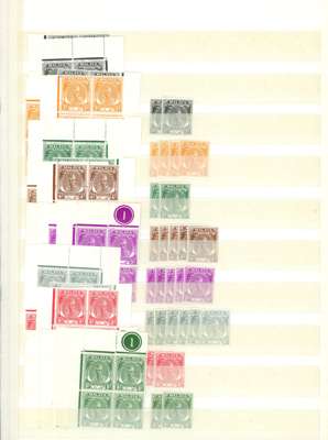 1951-5 set on two stockbook pages, an accumulation with ten unmounted sets (save 30c and 35c, eight of each) including blocks, Plate numbers and extra values. Also two mounted sets with extras including 2 x $5. A nice clean group. SG 61-81