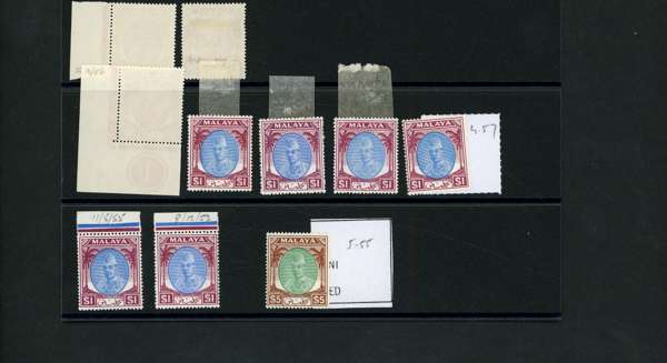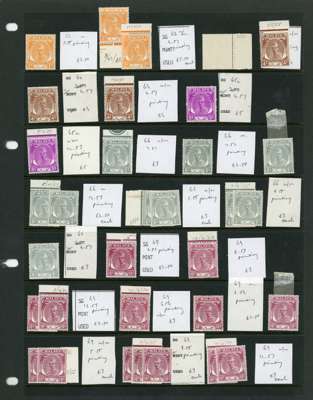 1951-5 group of 43 stamps, mint, all with printing dates allocated, mixed unmounted and hinged. A little duplication. Values to $5 (5.55 printing, unmounted) and including six x $1 but mostly low values, with a good account of the 10c (9 printings). Either contemporary dating or from comparison with an authoritative refefence collection. SG 62/81