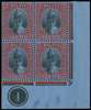 1940 $1 black and red on blue paper lower right corner Plate block of four, unmounted o.g. SG 119, £600