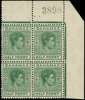 1938-42 ½d green top right corner block of six with R1/5 RP ‘Accent’ flaw, and 2/6 bulge in frame behind King's head, fine unmounted o.g. SG 149b, £550