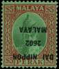 1942 $5 Perak green and red on green paper with DAI NIPPON 2602 overprint inverted, large part o.g. BPA Certificate (1995). SG J253a, £325
