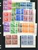1950 set in blocks of four, o.g., all seemingly unmounted save for the top pair of the 10r. All Plate blocks except the 5c. Someone has rubbed out release dates pencilled on the selvedge, obviously not recognising their significance, but they can still be made out; most, but not all, are original releases. SG 276-290, £320