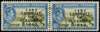 1942 Landfall 6d olive-green and light blue horizontal pair, the right stamp with R5/2 COIUMBUS variety, used with MAR 43 CDS. SG 169a, £1500