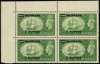 1953 2r on 2/6d yellow-green, surcharge Type II. Upper left corner block of four, unmounted o.g., slight natural gum bends otherwise fine. SG 77a, £640