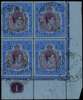 1941 (May) 2/- line perf lower right corner Plate block of four, #59 broken upper right scroll and #60 broken lower right scroll, almost full o.g. but used with Hamilton CDSs of 20 FEB 42. Minor selvedge faults, excellent colour. SG 116bd, be, £1800