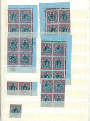 1943-52 2/6d mint range, mostly in blocks. Perf 14 with four blocks of four (one a 1946 Plate block), block of six, pair and single, all fine, only the single hinged; perf 13 seven blocks and five singles, the blocks with two-toned gum in varying degree. SG 117b-d