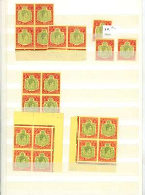 1943-50 balance lot with perf 14 SG 118d block of four (some gum loss), marginal pair and single with HPF #12a, plus two hinged singles; 118e three unmounted blocks of four, one with HPF #49 but with a discoloured band on the reverse of the top pair. Perf 13 with ordinary paper 10 singles (two used) mostly with identified flaws; chalky paper Plate block unmounted (two creased) and two mint singles, one unmounted. SG 118d-g