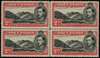 1949 2d black and scarlet block of four, unmounted o.g. Lower right stamp with R4/4 Mountaineer flaw. SG 41ca, £275