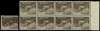 1943 9d Platypus perf 14 x 15 with a striking over-inking variety causing dark stripes, the ‘camouflaged platypus’, large part o.g. Also a large part o.g. block of eight, with the sixth stamp cut and damaged during printing, the lower stamps also over-inked, stated to have come from the same sheet as the single, although the centering is different. SG 191 var