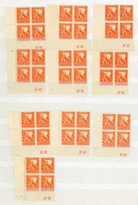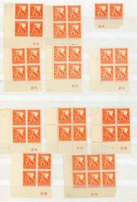 1936-42 Pictorial 2d mint collection (444) on stocksheets, cards and part pages, including a few Officials. A wonderful lot with many (duplicated) Plate blocks including better perfs, two Tekoteko re-entry blocks (and a fine used single) and some further varieties. SG 559, 580+
