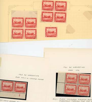 1936-42 Pictorial 6d mint collection (165) on stocksheets and part album pages, including a few Officials (perf 12½ Plate 2 block. Mostly multiples with lots of re-entries, Plate blocks, Multiple watermark perf 13½ x 14 inverted block (slightly brown gum), Single watermark Plate 1 cracked plate (one stamp with small foxed spot), etc. Will repay examination. SG 564, 585+