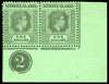 1942 (Aug.) 1/- grey and black on emerald paper lower right corner pair with Plate 2, R10/5 serrated edge, and notable deformation to name tablet letters, unmounted o.g. Ex Harold Green. SG 110bab, £750