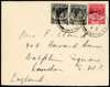 Postal History. 1938 envelope to London with KG V 6c and KG VI 1c (2), Christmas Island JA 26 CDSs. Unusual combination