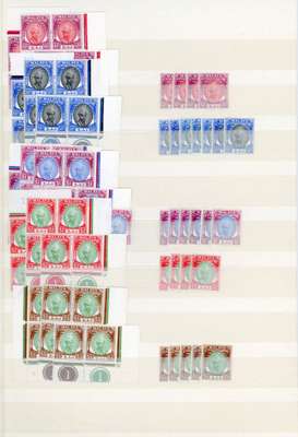 1950-6 mint accumulation put together with the intention of studying the printings. 6 complete unmounted sets but more typically ten of so of each value, only the 30c (6) and the 35c (9) having less than 10; including a Plate block of each value. Also 2 mounted sets (more typically 4 or 5 of each), and 67 values identified by printings including a hinged 1954 $5. SG 53-73a