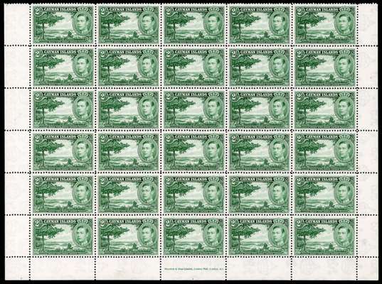 1938 2/- yellow-green lower six rows of a sheet with Waterlow imprint, fine and fresh unmounted o.g., thirty stamps. An unusual multiple. SG 124, £1650