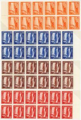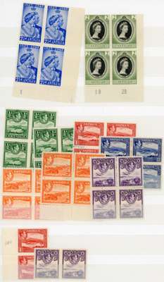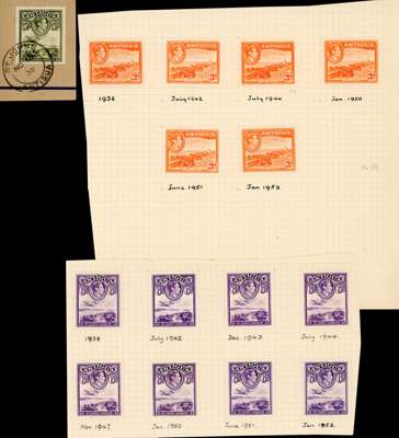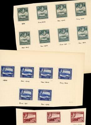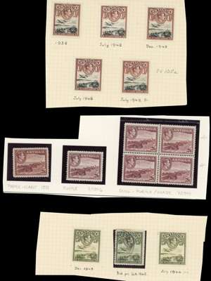 1938-53 collection from various sources with three KG VI definitive groups, two by printings, only one with 10/- and £1 (these u/m, as is 1½d lake-brown). Shades appear mainly correct. Some multiples, including 1953 Plate blocks to 60c unmounted