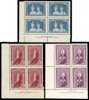 1938-48 Robes imprint blocks of four, unmounted o.g. with the £1 lightly hinged on the selvedge. The 10/- on thick paper, the 5/- and £1 thin. SG 176a, 177, 178a, £546