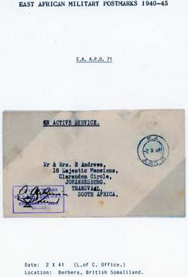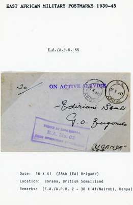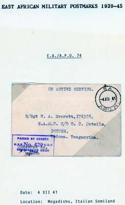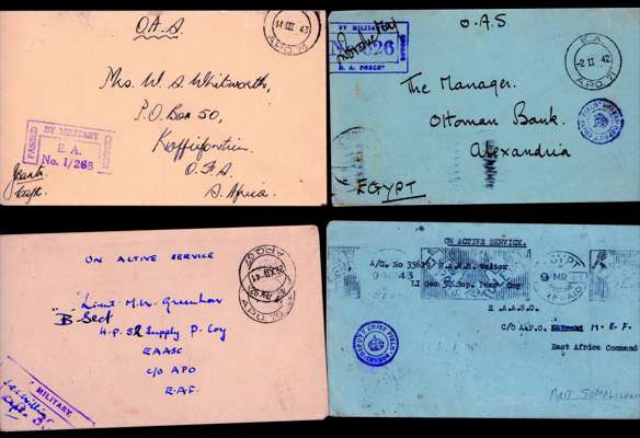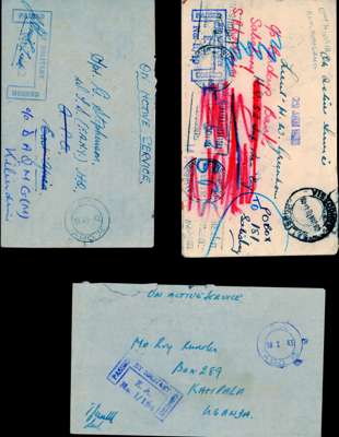 WW2 Censored APO envelopes (15) from various numbers, including 55 (Addis Ababa), 65 (Ethiopia, 2), 67 (Ethiopia), 71 (6), 73, 74 (Mogadishu, 4). Good group
