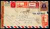 Bahrain CASOC imprint envelope to San Francisco via New Zealand bearing 1a, 2a (2), 12a and 2r, Bahrain Air CDSs of 2 JY. Brown OPENED BY CENSOR tape at left and triangular Calcutta Censor A11 on front. Large purple handstamp “Via B.O.A.C. to Aucklnd/ Pan American Airways/ to Sanfrancisco” (sic) front and back. A fine cover, ex Ian Warn