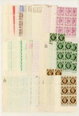 1937-52 selection of Cylinder blocks mixed hinged and unmounted o.g., with a number of better items. ½d pale orange (1, Cyl. 154 no dot); 1d scarlet (17, all without marginal rule); 1d pale scarlet (4); 1½d red-brown (5); 1½d pale green (1); 2½d light ultramarine (2); 2½d pale scarlet (7); 4d blue (1); 5d (5); 6d (3); 7d (5, with perf Type 5 9 no dot, perf Type 6 9 no dot and 12 no dot); 8d (3, with 9 dot and no dot); 9d (3); 10d (5, with perf Type 6 7 no dot x 3 and 7 dot); 11d (3, with the rare perf Type 5 1 dot) and 1/- (6, with perf Type 5 16 dot, 17 dot and 19 dot, perf Type 6, perf Type 6 19 dot x 2). Mainly fine, mixed mounted and unmounted. SG 463/508, Spec £3547