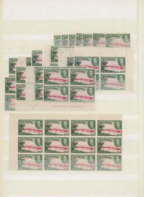 1938-49 30c multiples mint, mostly unmounted. Sideways watermark; six Plate blocks, three unnumbered (one of 18), two FP 2 (one of 15), one FP1, and 11 other blocks, one of 15. Upright watermark; Plates 2 and 2a blocks (11, two of 8 and one of 20) and 11 other blocks. SG 393, b