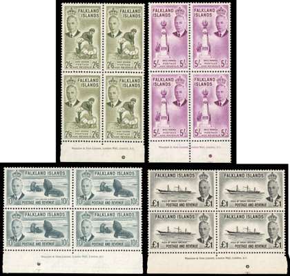 1952 2/6 to £1 imprint blocks of four, fine unmounted o.g. SG 182-185, £484