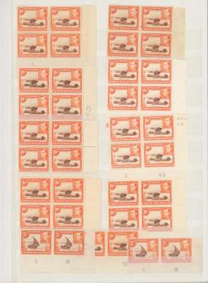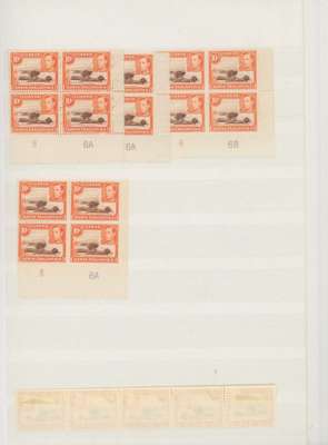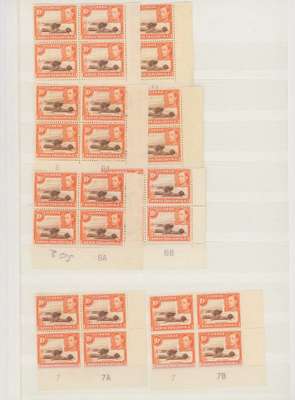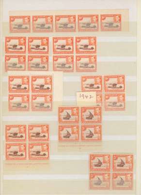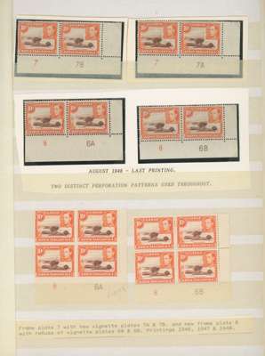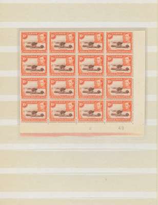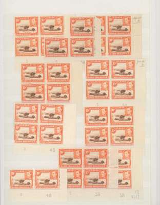 1938-49 10c red-brown and orange mint collection (331) on stocksheets including perf 14 block of four (hinged on top pair). Perf 13 x 11¾ with 38 Plate blocks and 31 Plate pairs, some assigned to printings; numerous other blocks with shades, no doubt of much interest to the specialist. SG 134, c