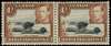 1942-9 1/- perf 13 x 11¾ horizontal pair, left stamp with R6/7 Mountain retouch. Large part o.g. with hinge remainder. SG 145ac, £1400