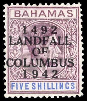 1942 Landfall 5/- ordinary paper, R2/6 broken OF (early state), lightly hinged mint with a small black adhesion on reverse. SG 174b, £750