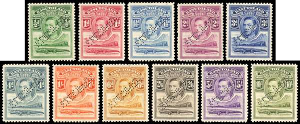 1938 set of eleven perforated SPECIMEN Type W8a, good to fine o.g., 2d with one short perf at left. SG 18s-28s, £375