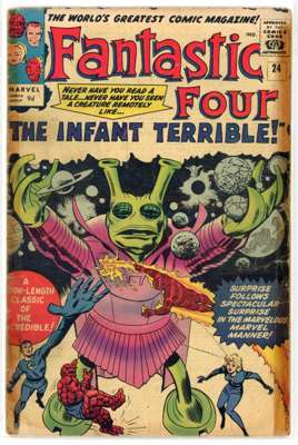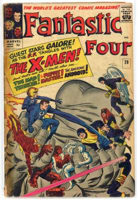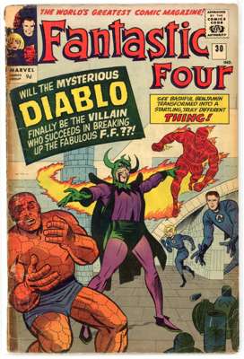Bundle includes #11 (GD, tape to spine, first appearance and origin of Impossible Man), #22 (VG, second appearance of Mole Man, Invisible Woman gains new superpowers, The Thing first exclaims, 'It's Clobberin' Time), #24 (GD, tape to spine and front cover. First appearance of the Infant Terrible), #26 (FR, tape to spine, Classic battle of the Avengers & Fantastic Four vs the Hulk), #28 (FR, tape to spine, first crossover of the X-Men in the Fantastic Four title, second appearance of the Mad Thinker), #29 (GD, first cover appearance of the Watcher), #30 (GD, appearance of Diablo, a 9th century alchemist who sold his soul to Mephisto for an extended lifespan), #31 (GD, appearance of Dr. Franklin Storm, the father of Sue and Johnny Storm), #34 (GD, tape to spine, first appearance of Greg Gideon, a wealthy businessman who used his fortune to vex the Fantastic Four, first appearance of Thomas Gideon who later becomes Glorian), #35 (GD, first appearance of Dragon Man, second appearance of Diablo), #37 (GD, cover has detatched from staples, first appearance of Anelle, Skrull royalty and the mother of Hulkling), #38 (VG, second team appearance of the Frightful Four, second appearance of Medusa, first appearance of Paste-Pot Pete as the Trapster, The Thing returns to human form, briefly), #41 (VG, third appearance of the Frightful Four), #42 (VG), #43 (GD, cover has detatched from the staples,back cover has a 2inch rip), #44 (VG, appearance of Gorgon, Black Bolt's cousin and bodyguard), #45 (GD, first team appearance of the Inhumans, a race created by the Kree: Triton, Karnak, Lockjaw, Gorgon, Medusa, Crystal and Black Bolt), #46 (GD/VG, team appearance of the Inhumans) and #47 (GD, first appearance of Maximus, the brother of Black Bolt).
