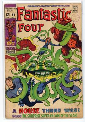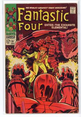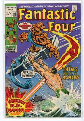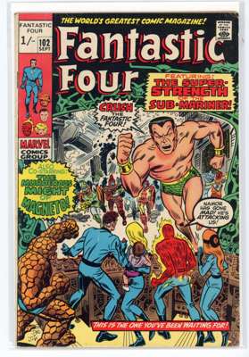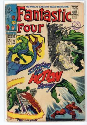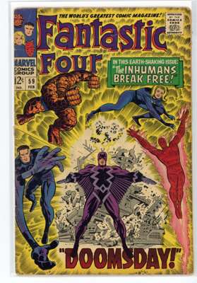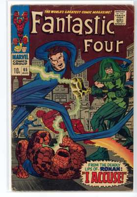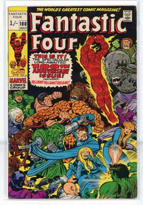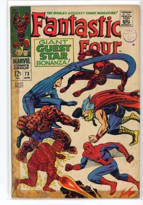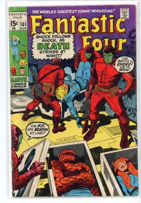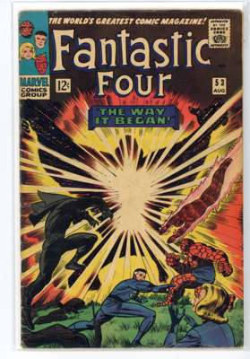 Bundle includes #53 (VG, First mention of Wakandan Vibranium metal, first appearance of T'Chaka, Black Panther's father, second appearance and origin of the Black Panther, first appearance and origin of Klaw), #54 (VG, third appearance of the Black Panther, third appearance of John Prester, the Wanderer), #57 (GD, cover has detatched from top staple, Iconic cover art by Jack Kirby featuring Doctor Doom, Doctor Doom steals Silver Surfer's powers), #58 (VG), #59 (GD), #62 (FR, major wear to the cover, first appearance of Blastarr, an alien from the Negative Zone), #63 (VG), #64 (VG, appearance of Kree Intergalactic Sentry 459, First mention of the Kree alien race), #65 (VG, first appearance of Ronan the Accuser, a high-ranking Kree who can trace his ancestry back to the early Kree tribes of Hala, first appearance of the Supreme Intelligence, a collective information system of the greatest Kree minds), #66 (GD, cover has detatched from staples, piece missing from the back cover, Origin of HIM, later known as Adam Warlock, appearance of Carlo Zota, a member of the Enclave whose story is retconned to Marvel Comics #1 (1939), #71 (GD), #73 (FR, tape to spine and bottom of cover), #81 (VG, Crystal, the Inhuman joins the Fantastic Four), #88 (GD/VG), #100 (VF/FN), #101 (GD/VG), #102 (VG, Final continuous Stan Lee and Jack Kirby collaboration on the Fantastic Four title, Unpublished Kirby art used for Fantastic Four #108 but this issue marks the end of an ongoing creative team-up that began with the publication of The Fantastic Four #1), #103 (GD/VG, second appearance of Agatha Harkness), #104 (FN/VF) and #136 (FN).