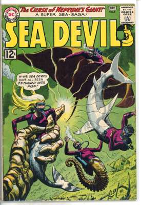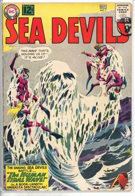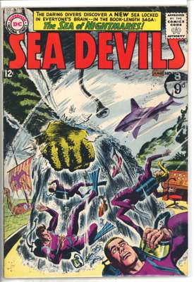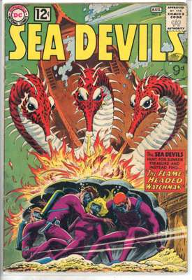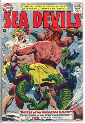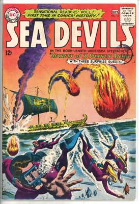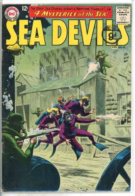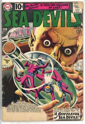 Sea Devils (DC Comics 1961-1963) Bundle of 10 comics, bundle includes Sea Devils #2 (FR, chunk out of front cover and multiple tips), #7 (VG, cover detatched from top staple), #6 (FN), #8 (FN), #9 (FN), #10 (GD, cover detatched from staples), #11 (VG, cover detatched from bottom staple), #12 (FN), #13 (FN) and #14 (FN)