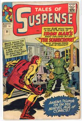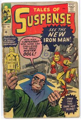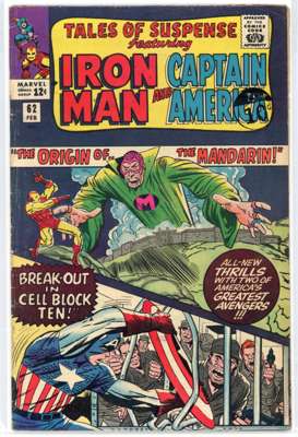 Tales Of Suspense (Marvel Comics 1963-1966) Bundle of 7 issues, bundle includes #42 (GD/VG. Fourth appearance of Iron Man), #44 (VG), #48 (GD, tape to spine, looks like cover was re-stapled, debut of Iron Man's 'Model II' armor, classic red & gold), #51 (VG/FN. First appearance of Scarecrow, a villain who manipulated fear using dark magic), #62 (VG/FN. Origin of the Mandarin, specifically how he obtained his ten rings, first appearance of Axonn-Kaar, an alien dragon whose ship was powered by ten rings.), #66 (VF. First appearance of Red Skull, Johann Schmidt, in the Silver Age, debut of Iron Man's 'Model III,' equipped with what would become his classic Repulsor Rays) and #70 (VG/FN)