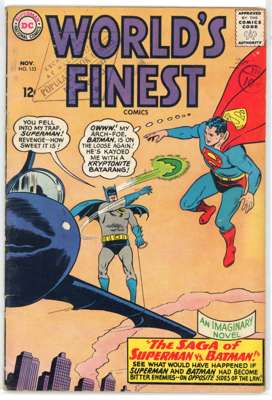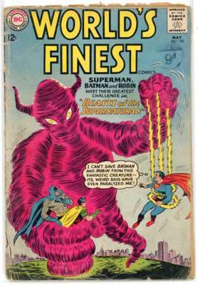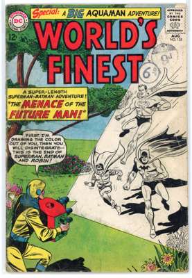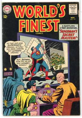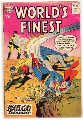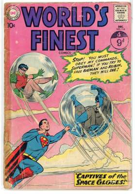 Worlds Finest (DC Comics 1959-1970) Bundle of 13 issues, bundle includes #103 (VG), #114 (PR, missing back cover, tape to front cover, cover detatched from staples), #120 (VG), #129 (FN), #133 (GD, cover detatched from staples, cover has split in two), #135 (GD), #137 (VG/FN), #146 (VG/FN), #149 (FN), #151 (GD), #153 (VG, cover has detatched from the bottom staple. Includes the panel of Batman slapping Robin that is recognizable from many internet memes), #177 (FN) and #192 (VG/FN).