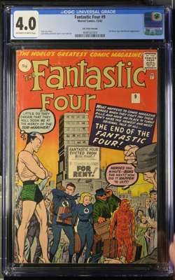 Fantastic Four #9 (Marvel Comics 1962) CGC Graded 4.0, off white to white pages.