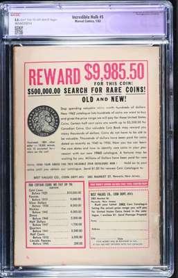 Incredible Hulk #5 (Marvel Comics 1963) CGC Graded .