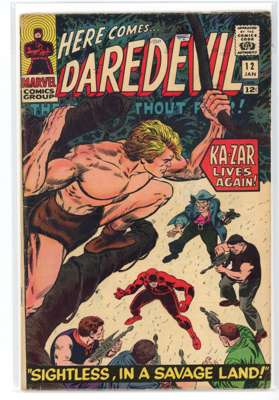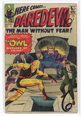 Bundle includes #3 (VG, first appearance and origin of the Owl, third appearance of Daredevil), #5 (PR, tape applied to all sides of cover front and back. First appearance of the Matador, redesign of Daredevil's chest emblem), #9 (GD. Cover art by Wally Wood, best known for his illustrative work for E.C. Comics (Weird Fantasy, MAD Magazine)), #10 (GD, first team appearance of the Ani-Men: Cat, Frog, Bird, Ape.), #11 (VG), #12 (VG. First appearance of the Plunderer), #13 (GD, cover has detatched from both staples. First appearance of Anti-Metal, a variation of Vibranium, origin of the Plunderer, origin of Ka-Za), #14 (VG), #15 (VG/FN) and #17 (VG).